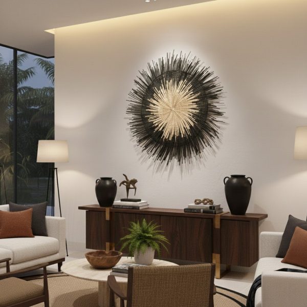 Infuse your space with the revitalizing energy of the sun through this bold, 100% natural black wall decor. Handmade by skilled African women artisans using sustainably sourced palm leaves, each piece combines authentic craftsmanship with iconic design. Perfect for your entryway, dining room, living room, or bedroom, this unique décorbrings timeless elegance and cultural heritage into your home.